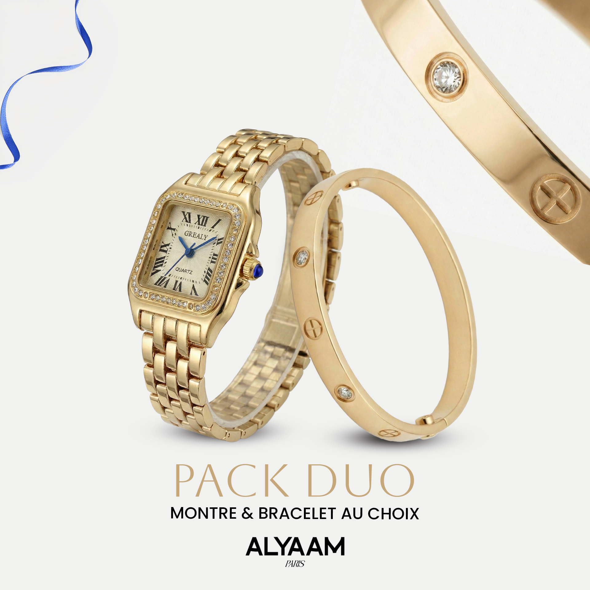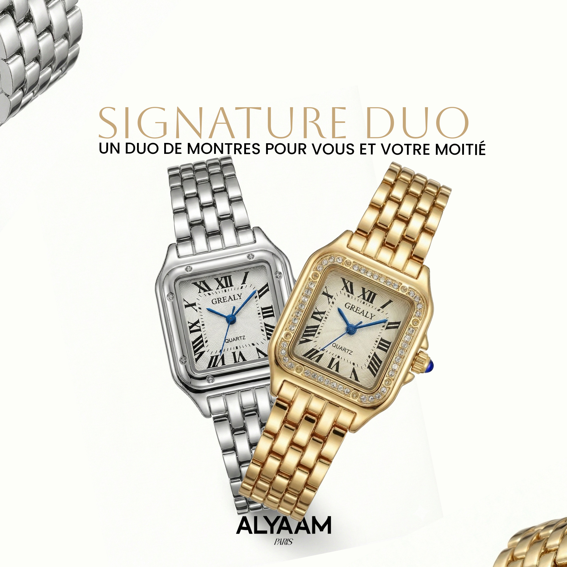 fiable, elle se décline en dorée, dorée avec strass ou argentée, reflétant la pureté et l’équilibre à chaque instant.